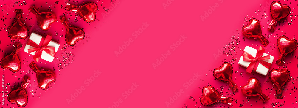 Happy Valentines day mockup. Background Color of the year 2023 viva magenta. Trendy colors concept