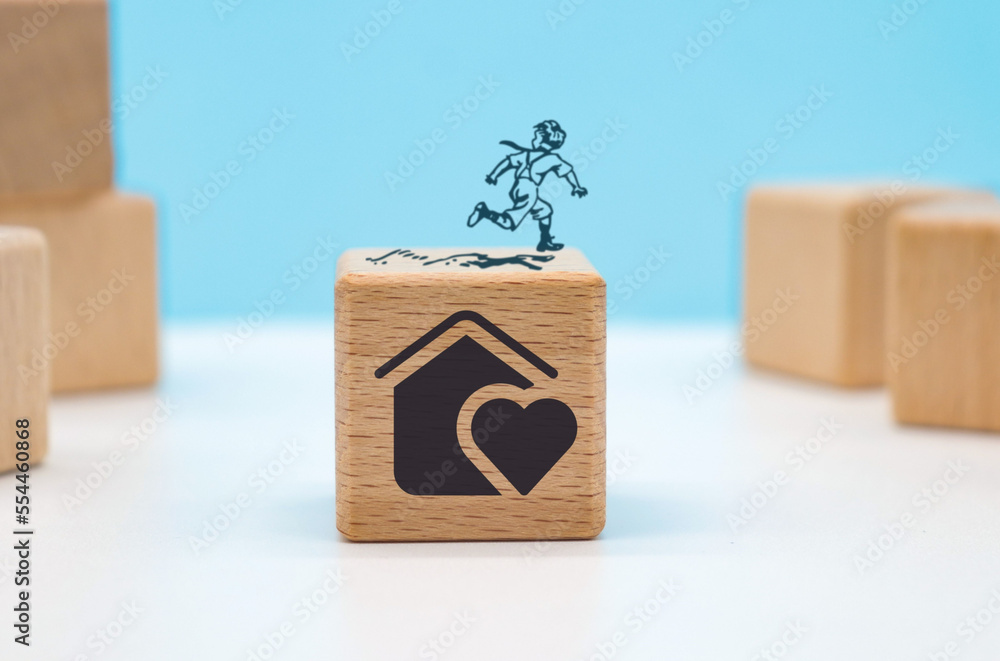 aids orphans day concept represented by icons on wooden cube blocks. on blue background with copy space