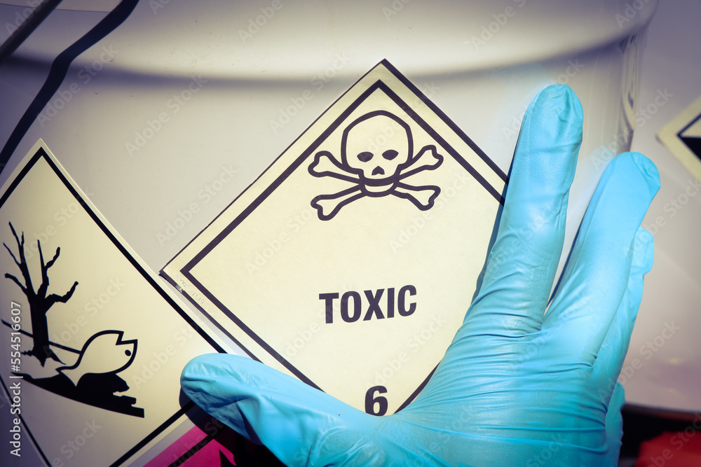 The toxic symbol on chemical products, dangerous chemicals in industry