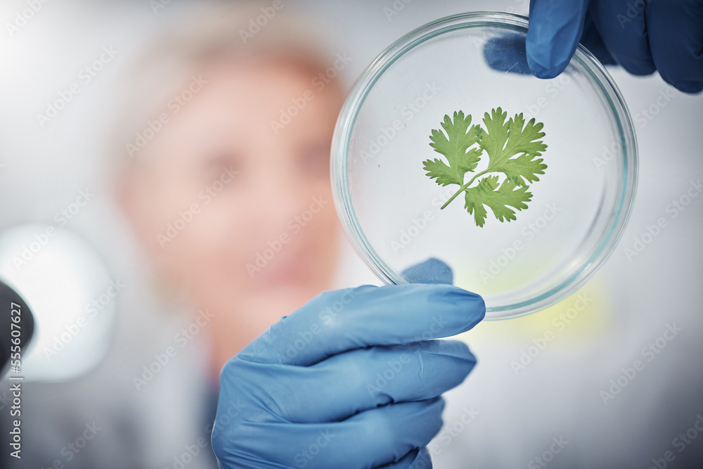 Science, research and plant sample with a doctor woman at work in a biology lab for innovation or development. Healthcare, medicine and study with a female scientist working on plants in a laboratory