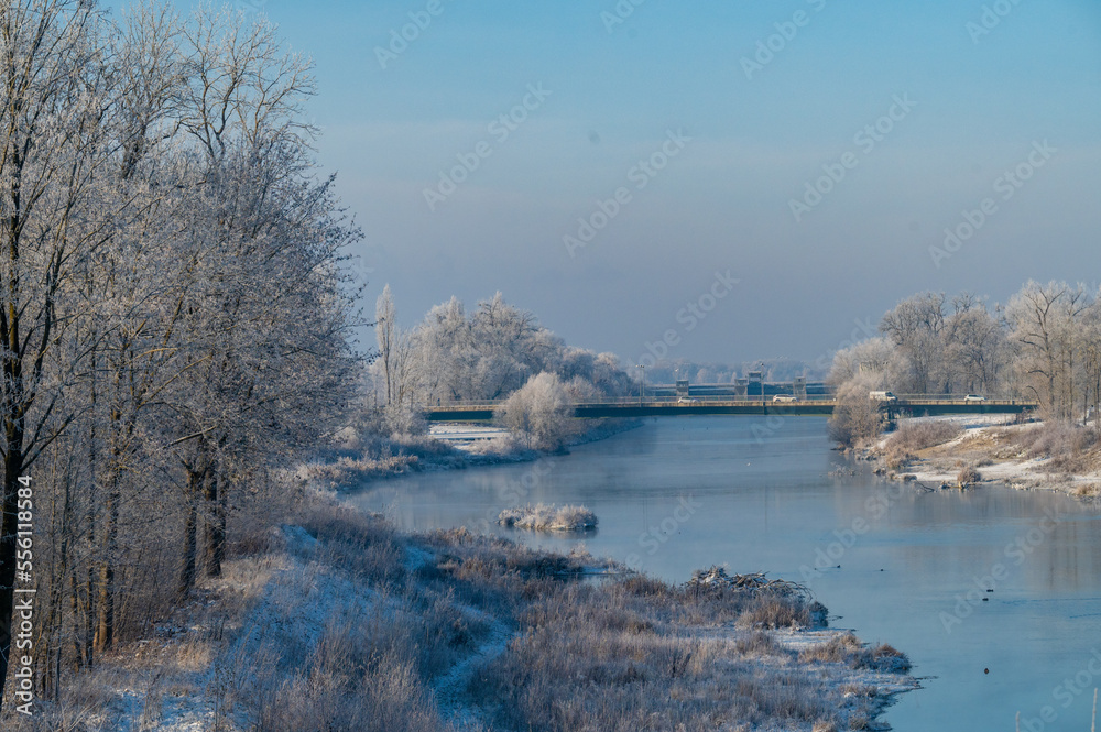 Flusslandschaft im Winter in Dingolfing
