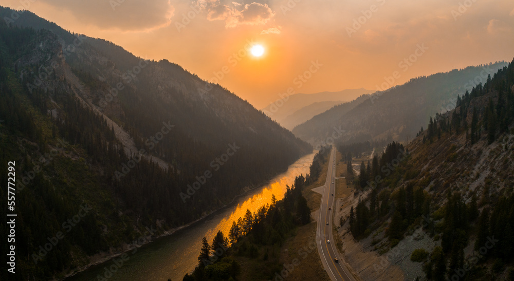 View of Mount Moran in Grand Teton National Park from above. Beautiful endless nature of America.
