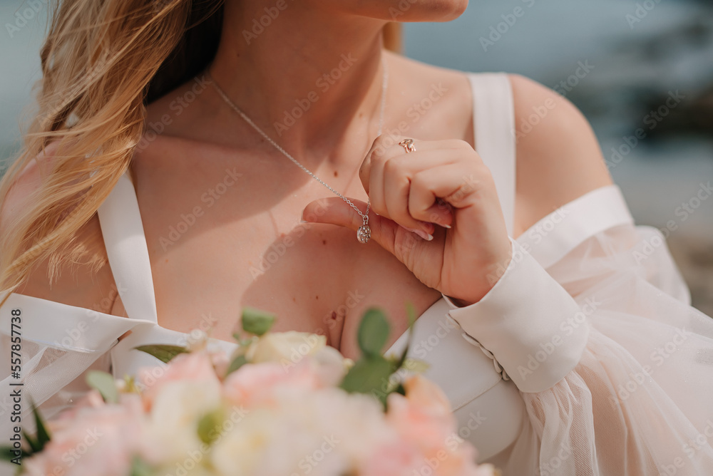Wedding dress, wedding rings, bride accessories