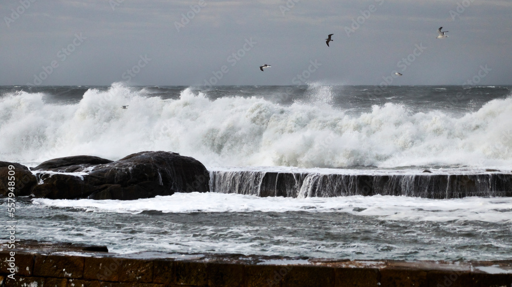 waves breaking on the rocks