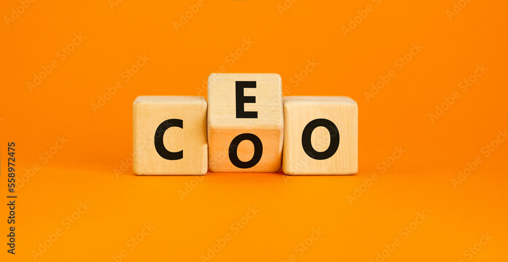 CEO or COO symbol. Concept word CEO chief executive officer or COO chieve operating officer on wooden cubes. Beautiful orange table orange background. Business and CEO or COO concept. Copy space.