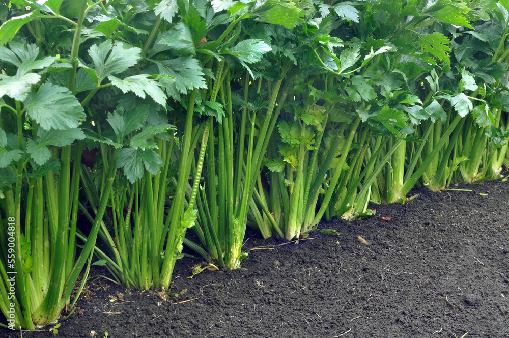 green frash petiole celery plantation (leaf vegetables) in the vegetable garden