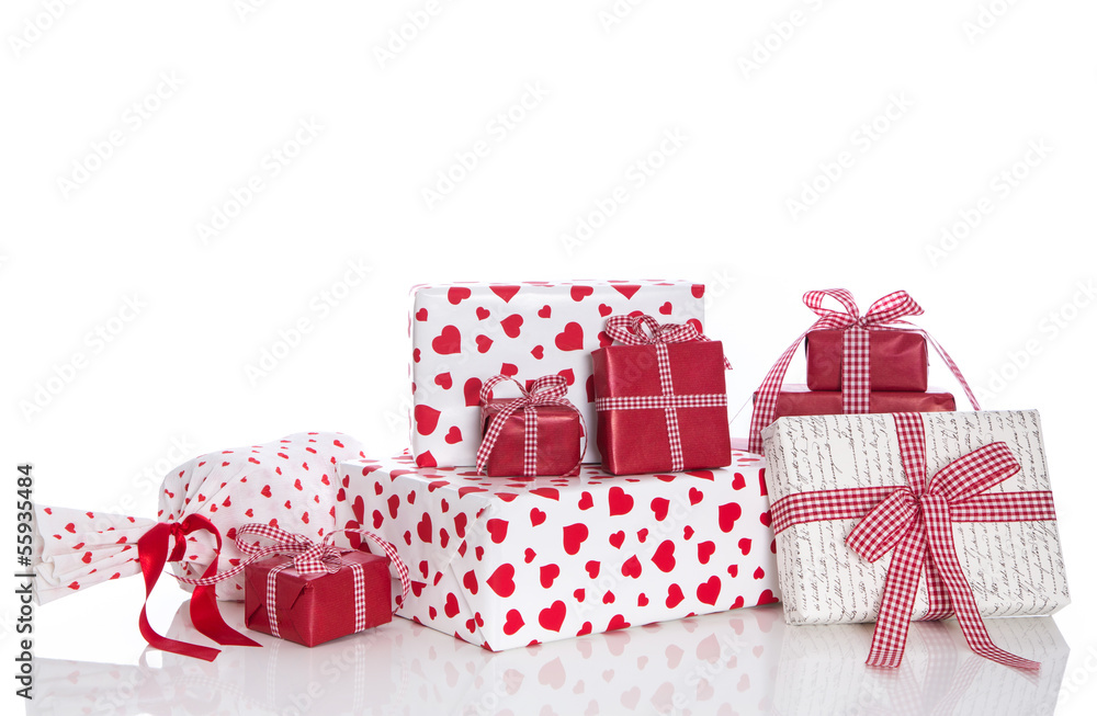 Weihnachten, Valentin - Geburtstag; Geschenke in Rot mit Herzen