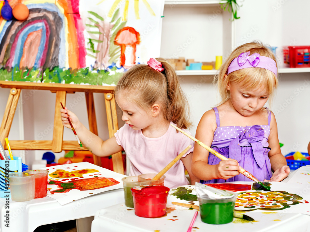 Child painting at easel.