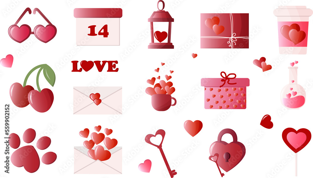 Valentines Day vector collection. Set of illustrations for Valentines Day. Nice design for celebration, greeting card and invitations.