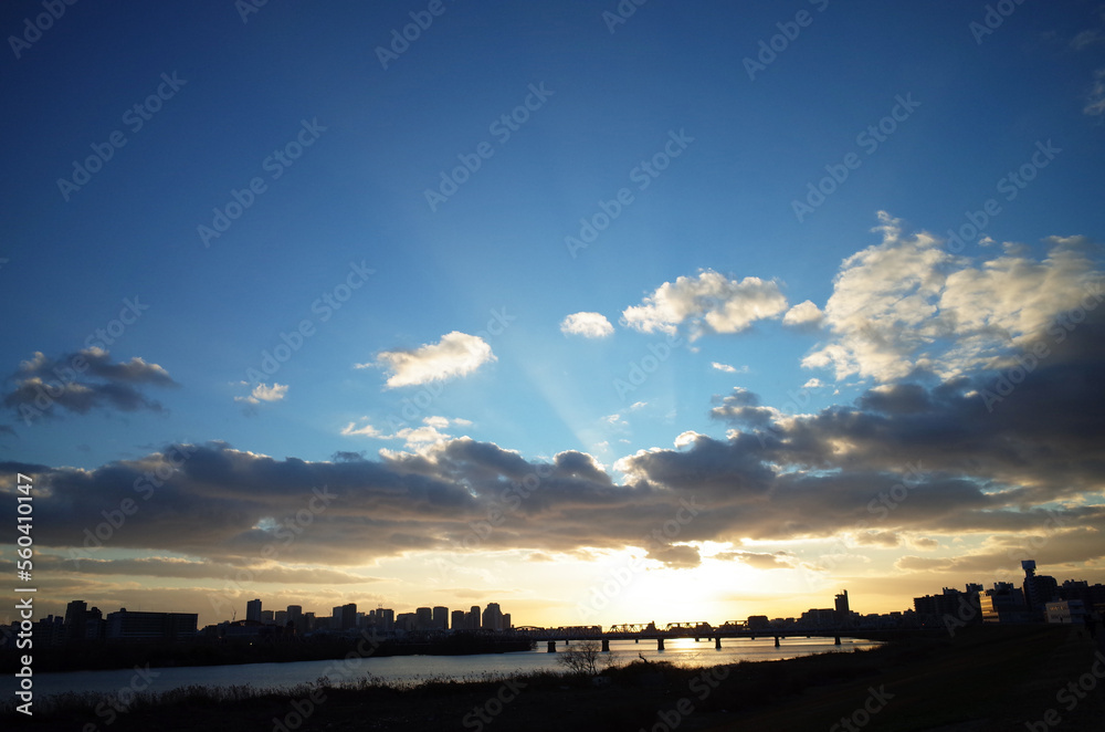 淀川の夕焼け空