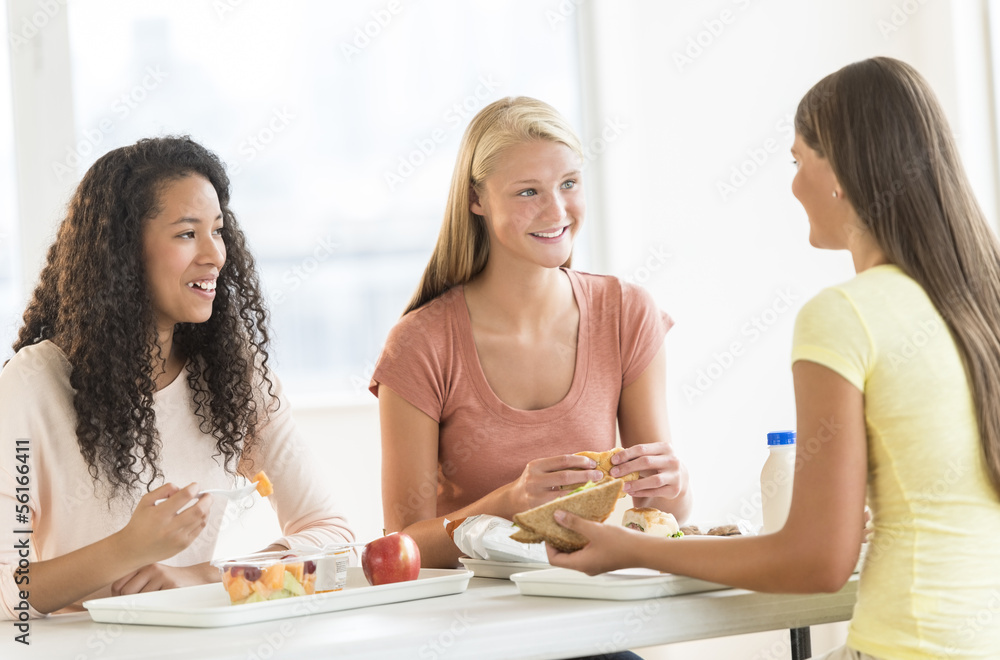 Girls Having Snacks In University Canteen