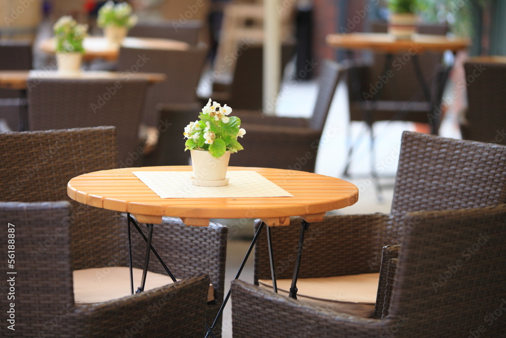 Outdoor restaurant cafe chairs with table
