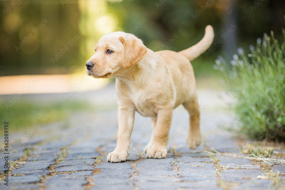 Goldener Labrador bei Auslauf im Garten, Welpen Prägung