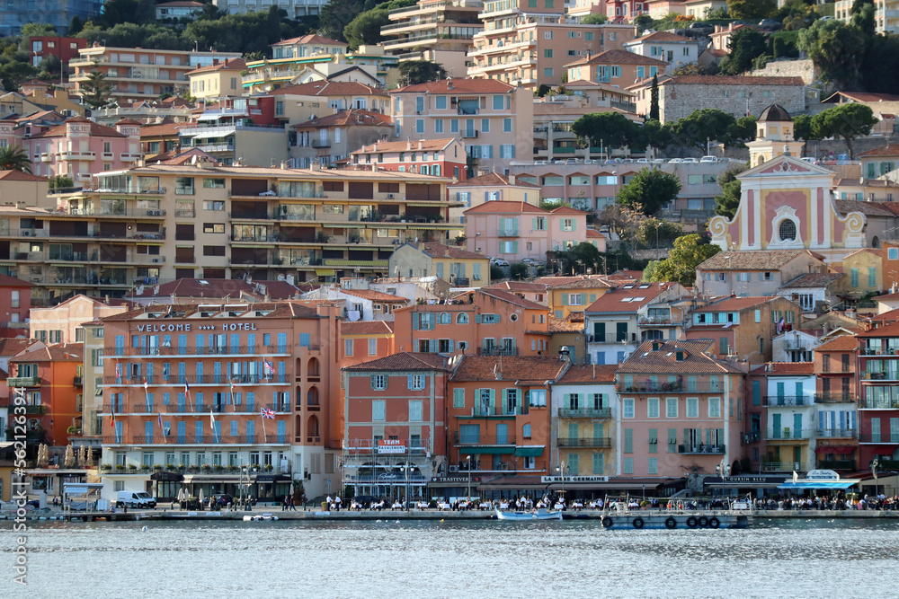 Villefranche-sur-mer, France - 26.11.2022: View of Villefranche-sur-mer on a sunny autumn day