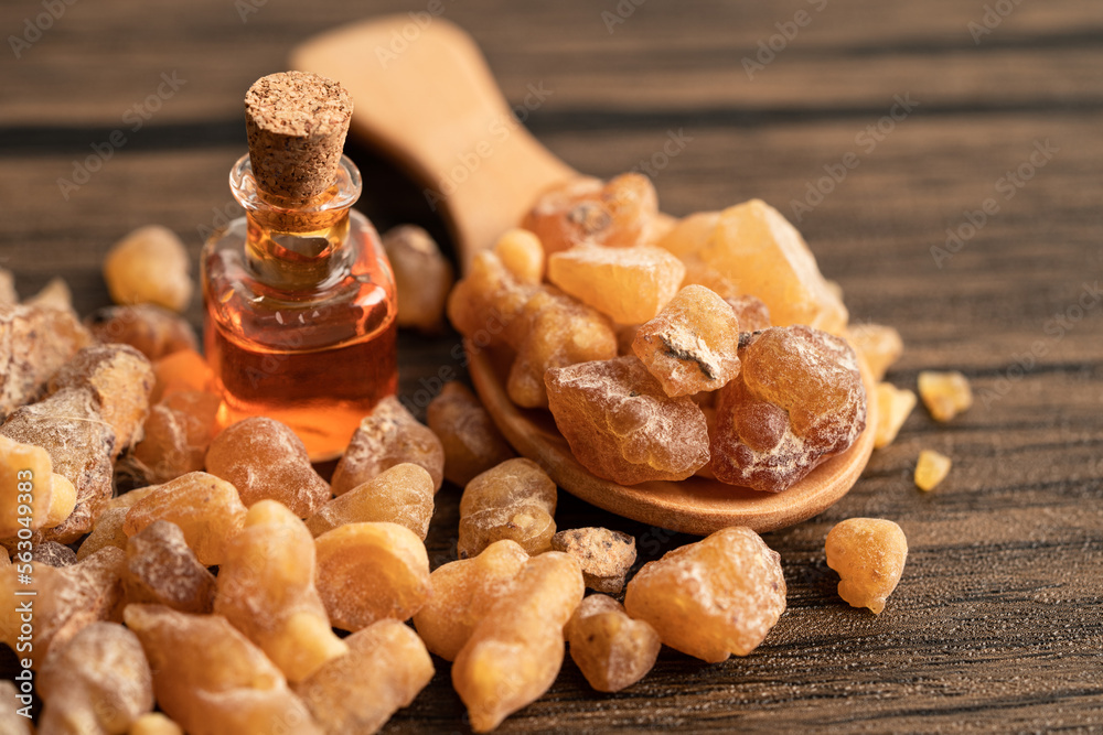 Frankincense or olibanum aromatic resin used in incense and perfumes.