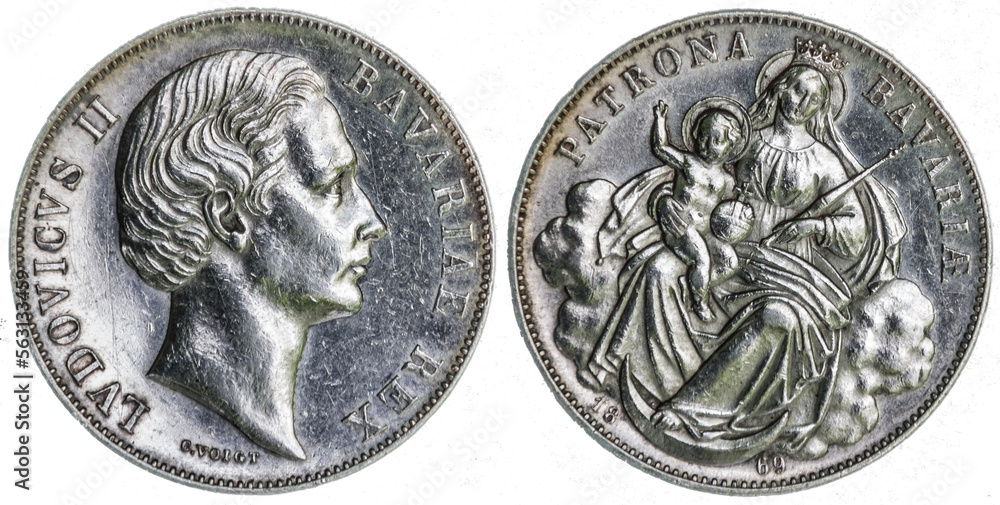 Münze - Königreich Bayern, Vereinstaler Ludwig II. – Madonnentaler, 1869, Taler, freigestellt, png