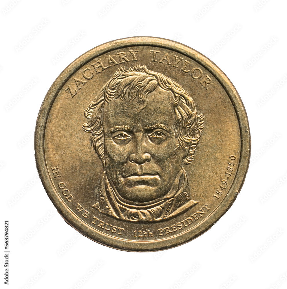 Zachary Taylor dollar coin, transparent PNG.