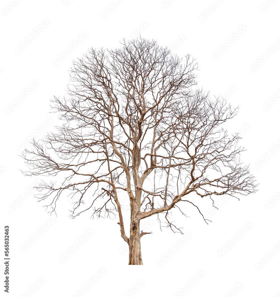 Single old big and dead tree dead isolated on white background.Large trees database Botanical garden organization elements of Asian nature in Thailand, tropical trees isolated used for design.