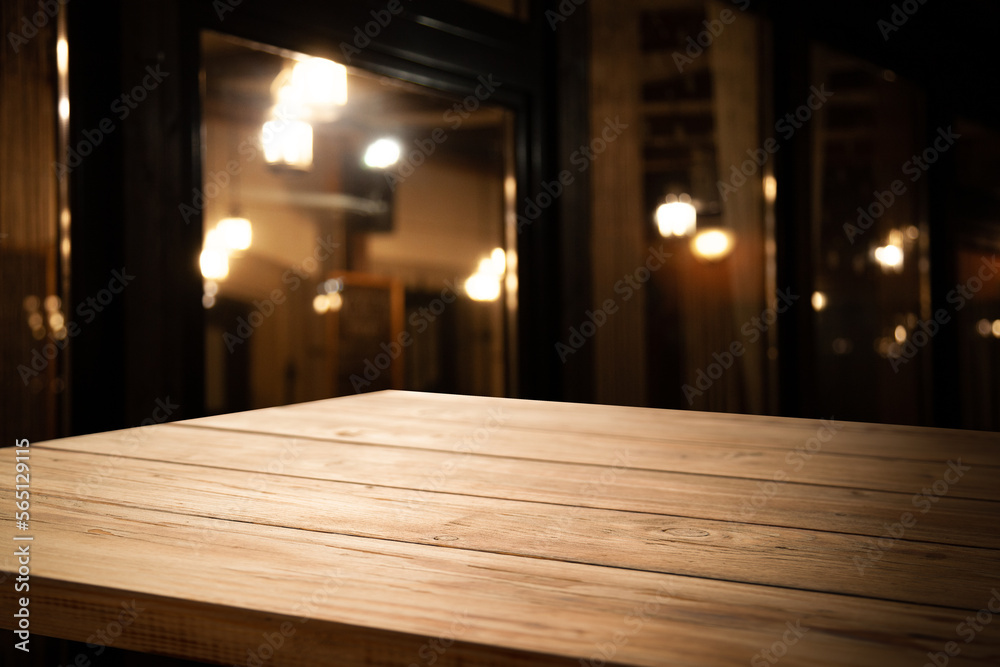 Empty wooden table top for cafeteria, bar, coffee shop background. For product display...