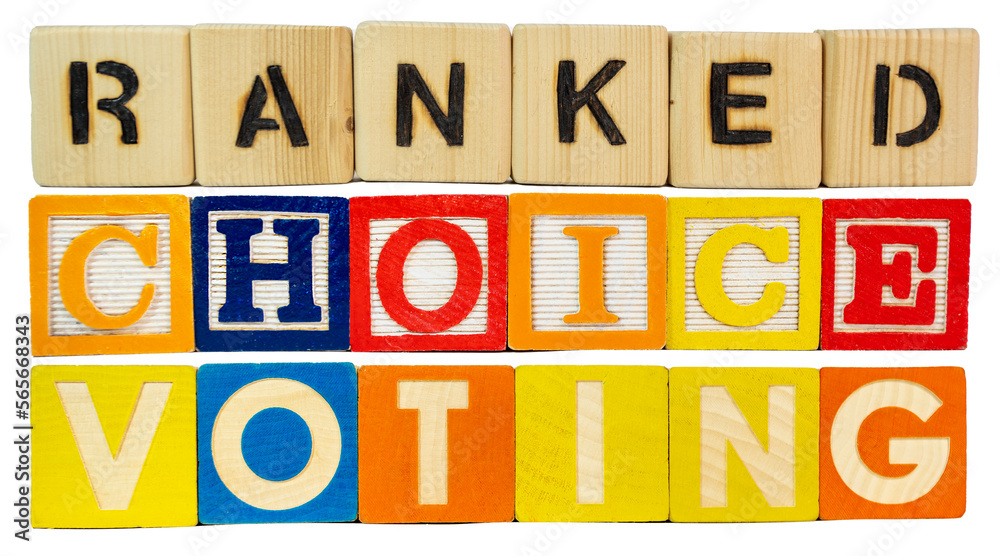 RANKED CHOICE VOTING concept in toy blocks. Isolated.