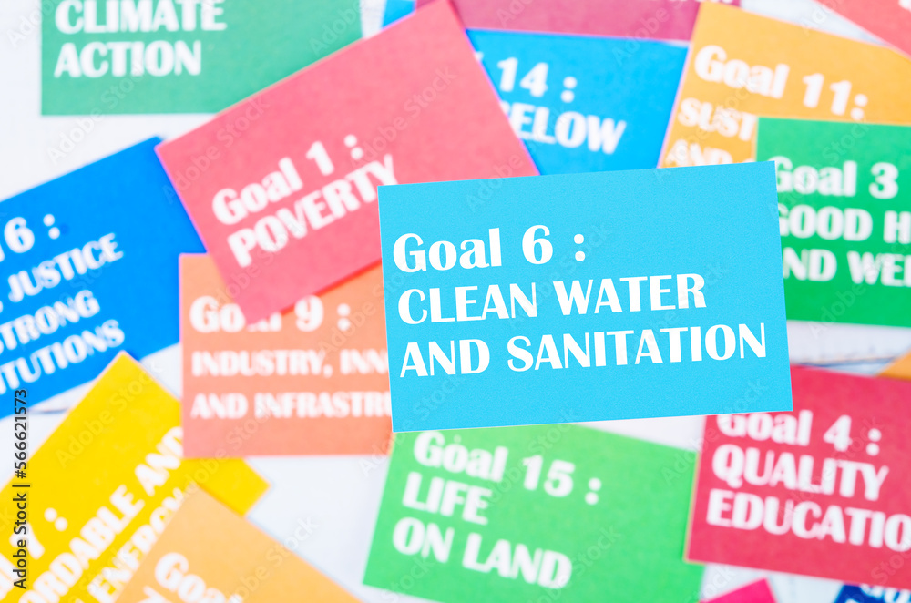 The Goal 6 : Clean water and sanitation. The SDGs 17 development goals environment. Environment Development concepts.