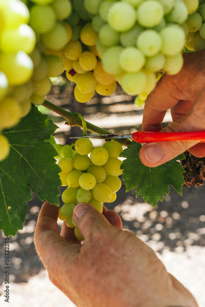Cutting a bunch of green grapes at a vineyard in the Swan Valley, Perth
