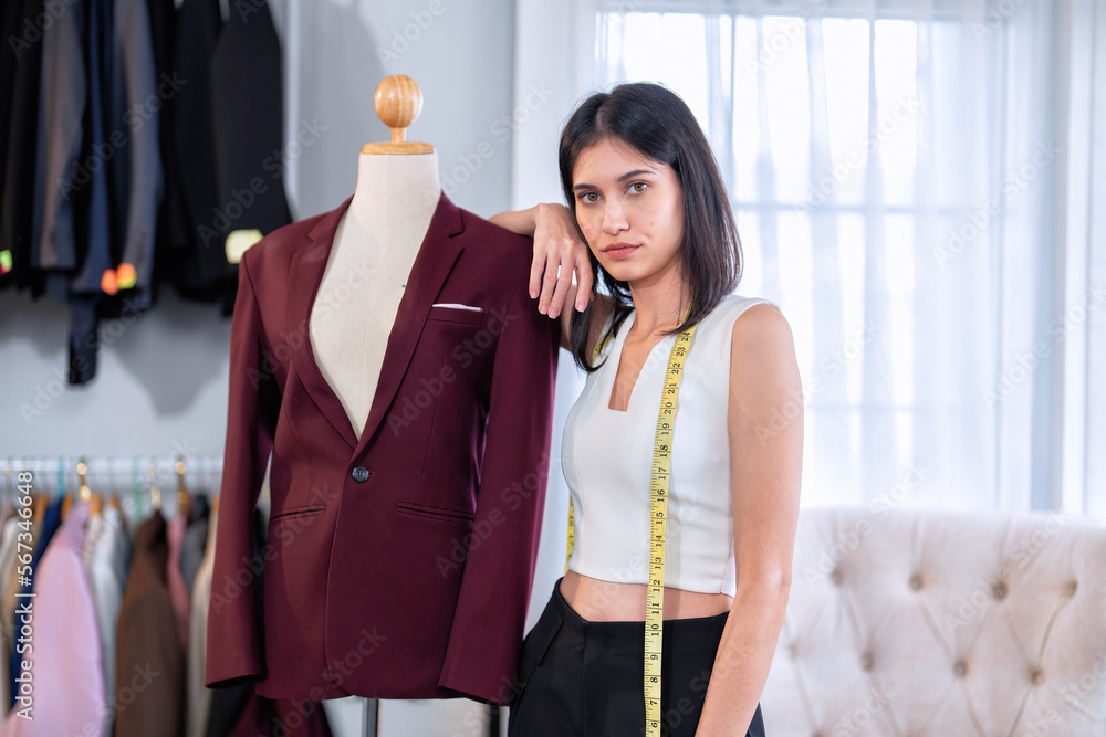 Young Asian woman professional fashion designer cloth maker in studio room smile portrait