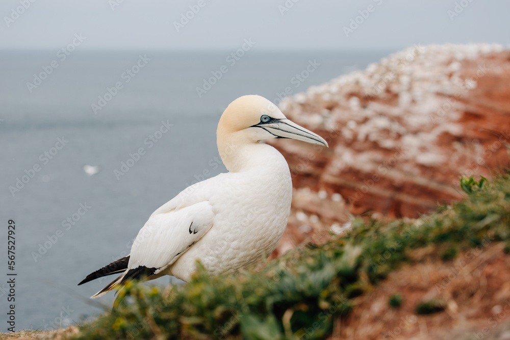 Gannets breeding on Island Helgoland in North Sea of Germany