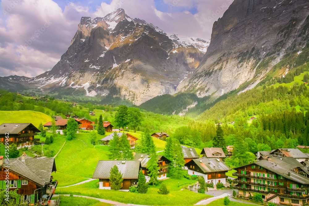 Grindelwald alpine village near Interlaken in the canton of Bern, Swiss alps