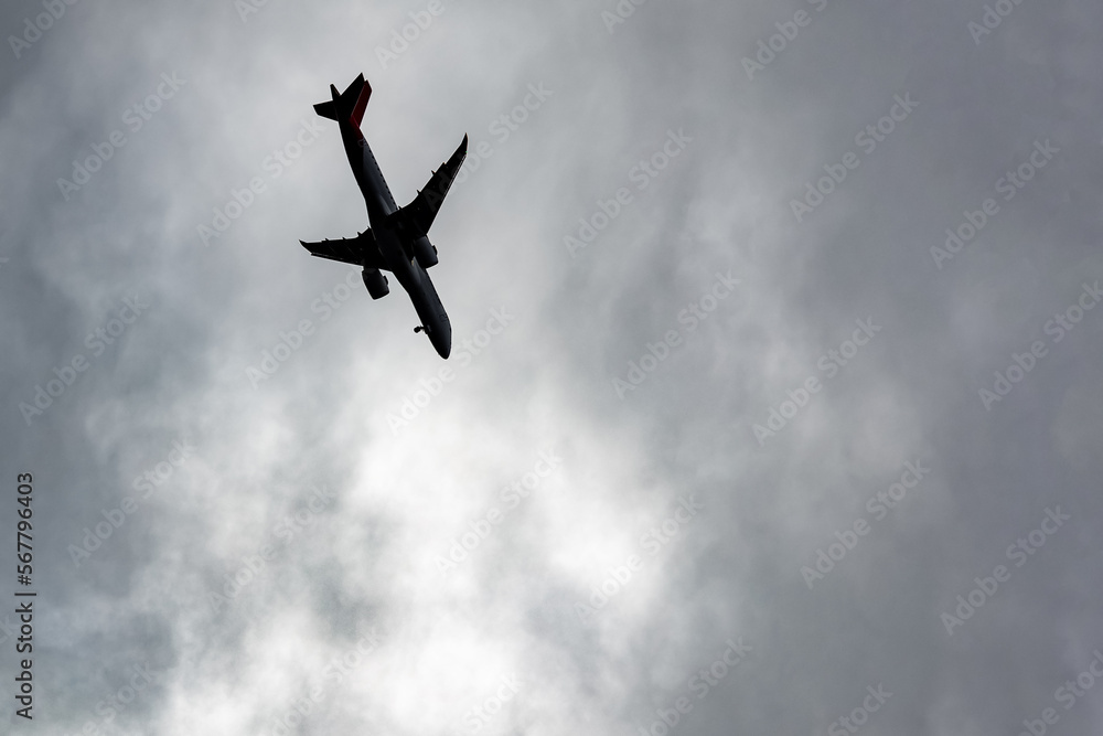 The plane is falling. Plane crash, uncontrolled aircraft in a tailspin