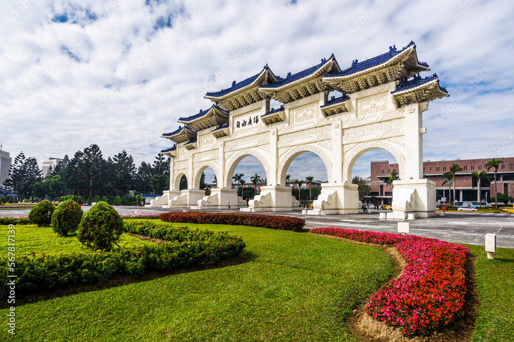 The main gate of the National Taiwan Democracy Memorial Hall ( National Chiang Kai-shek Memorial Hall ) in Taipei, Taiwan.