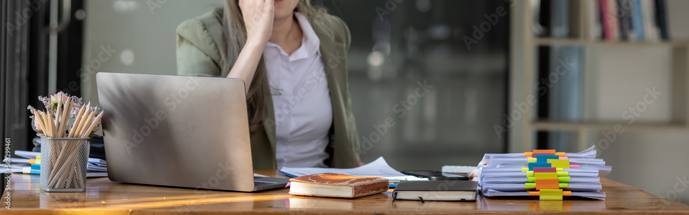 Asian businesswoman are stressed and tired from work sitting at desk in the office, feeling sick at work, stress from work.