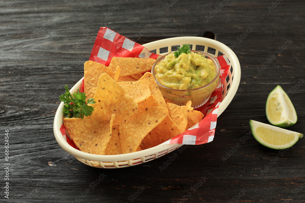 Tortilla Chips with Guacamole Avocade Lime Dipping Sauce
