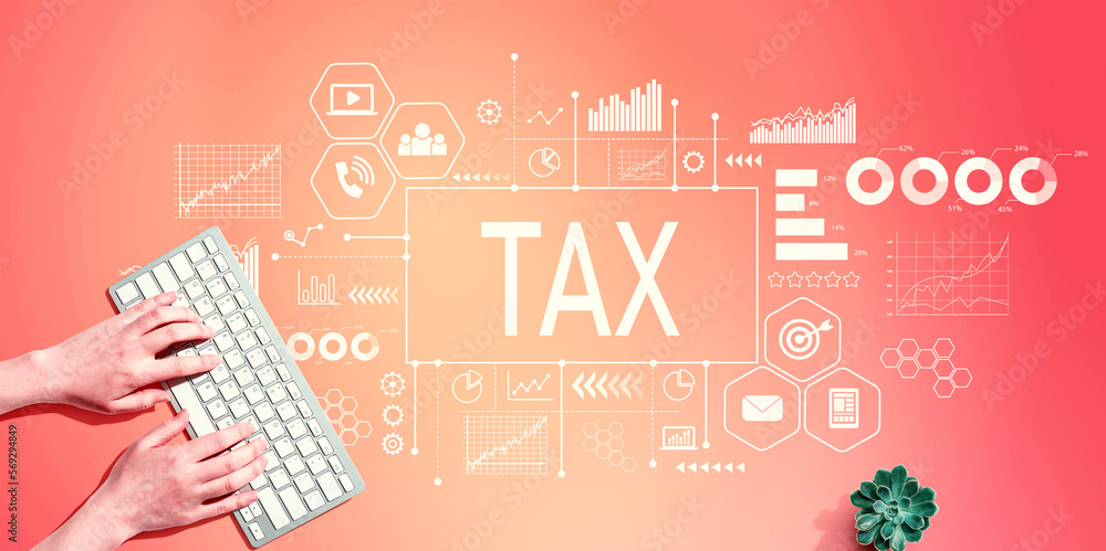 Tax theme with person using a computer keyboard