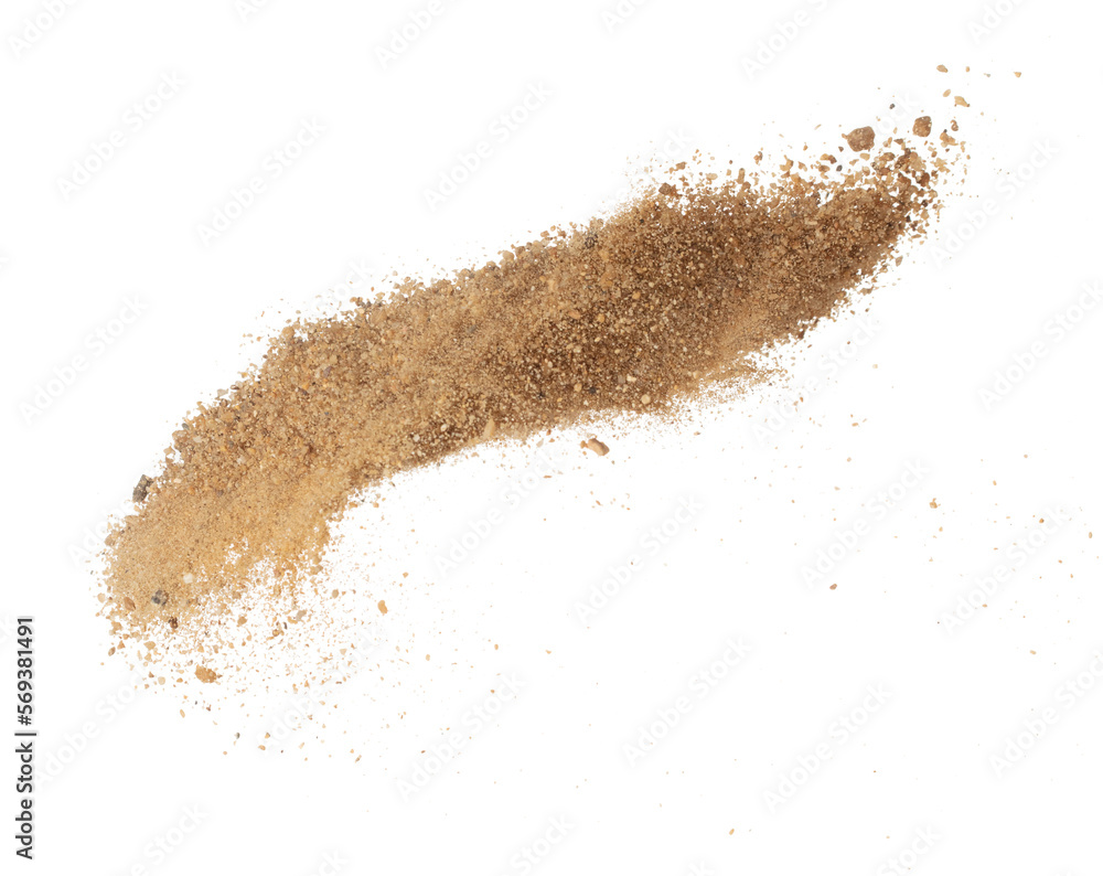 Big size Sand flying explosion, Golden grain sands wave explode. Abstract cloud fly. Yellow color sand splash throwing in Air. White background Isolated high speed shutter, throwing freeze stop motion
