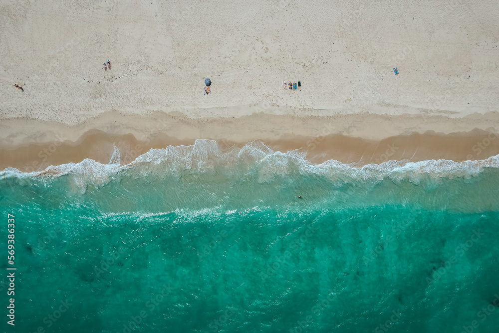 Top down drone capture of waves crashing on the shoreline at City Beach in Perth, Western Australia