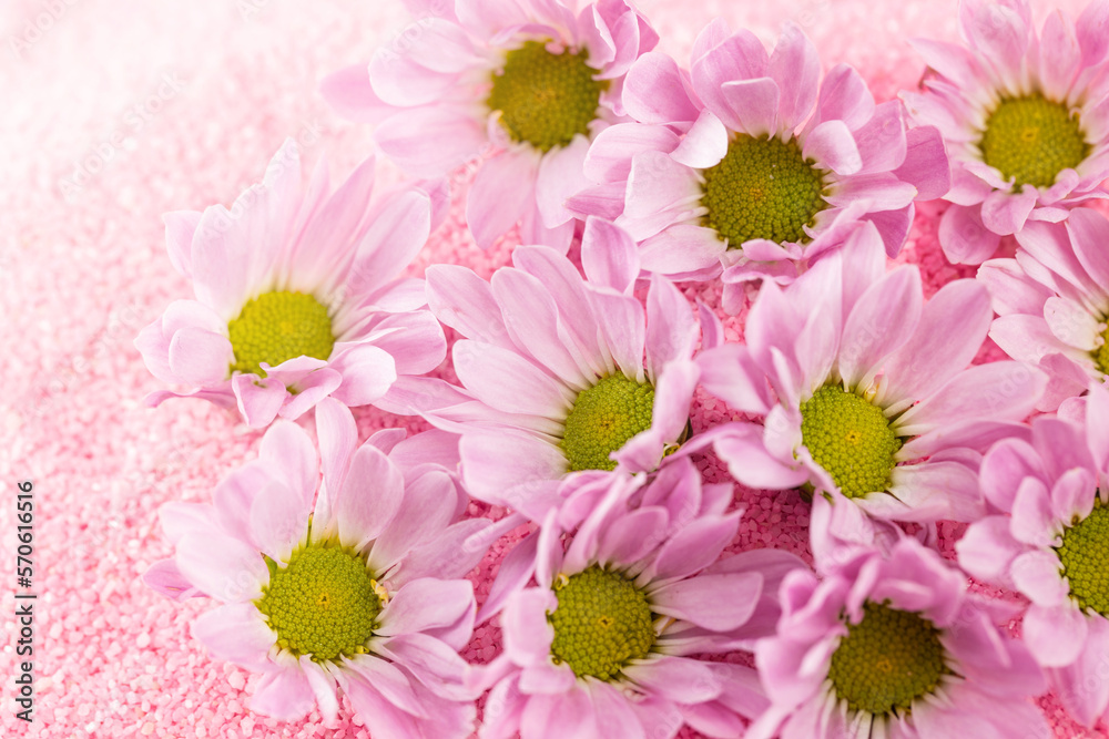 Pretty chrysanthemums on pink sand