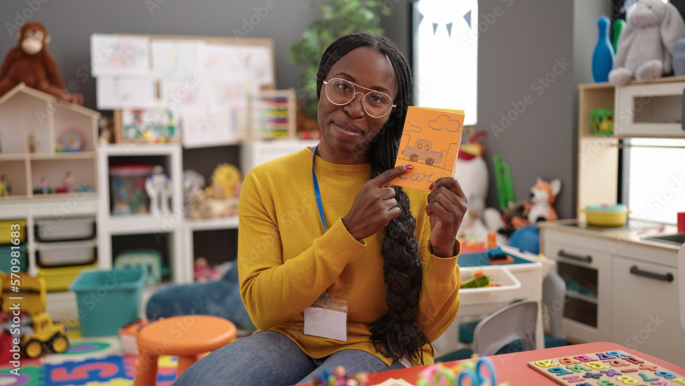 African woman preschool teacher on a vocabulary lesson at kindergarten