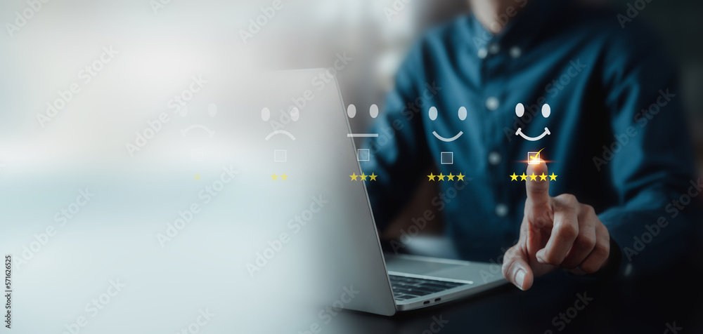 Customer services best excellent business rating experience. Satisfaction survey concept. user give rating to service experience on online application .