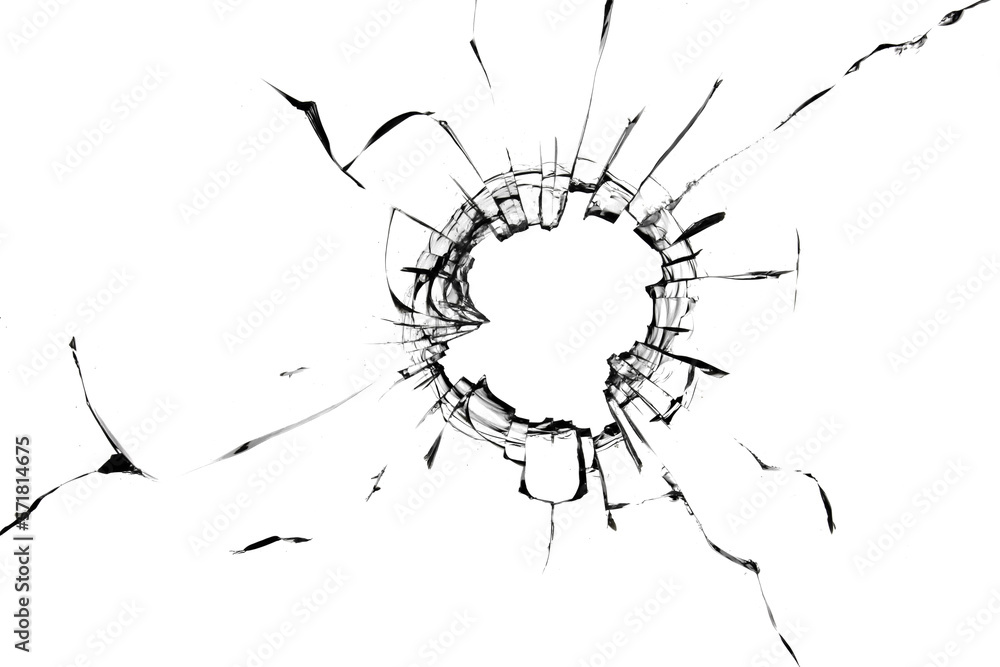 Photo of broken glass with cracked texture on a white background. For design