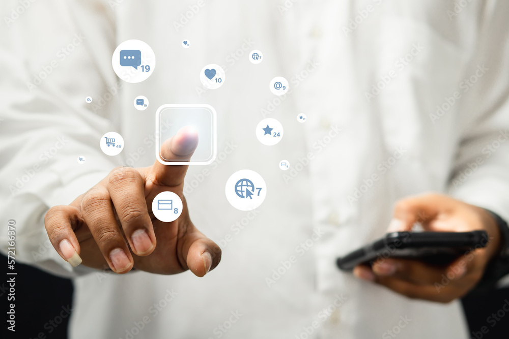 Trends of online businesses using smartphones in 2023, buying and selling products via the internet technology network.