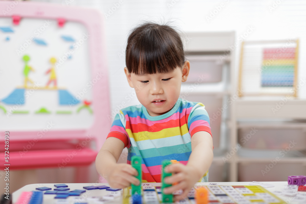 young girl play number blocks for homeschooling