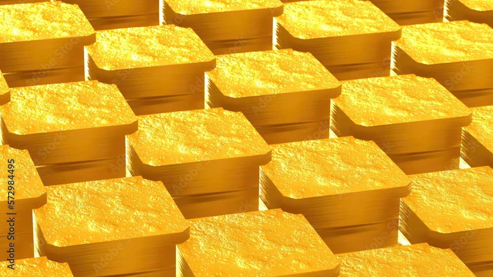 Abstract pattern, field of gold rectangular bars made of metal, rough industrial texture, background for a creative project.