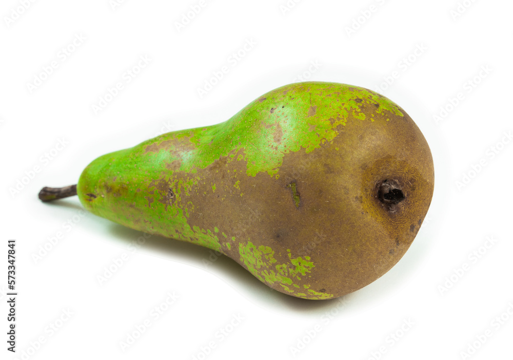 Single Pear, isolated on white background. Imperfect. Shallow depth of field.
