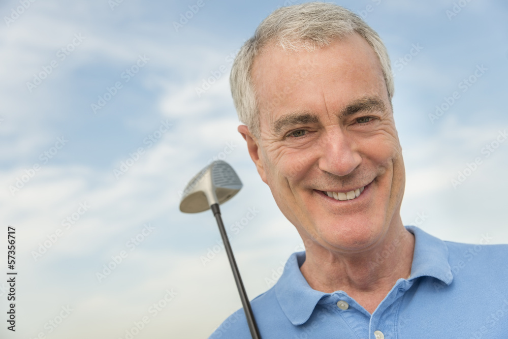 Man With Golf Club Smiling Against Sky
