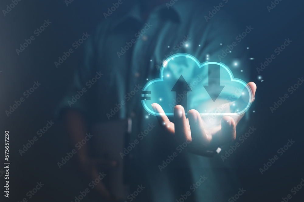 Business men select the technology data of the financial business, finance, uncle and capital by touching the cloud Cloud computing business ideas