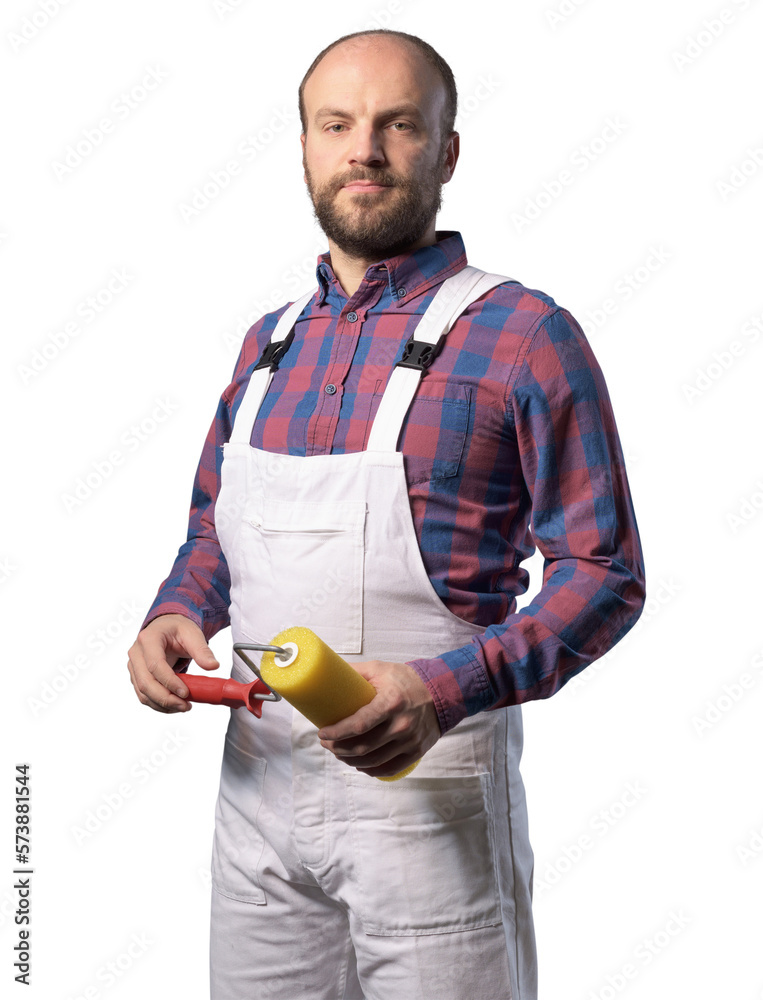 Professional painter posing with paint roller
