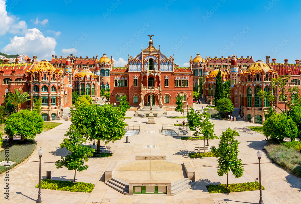 Interior design of easter dining room with colorful easter eggs, easter bunny sculptures, vase with tulips, wooden trace, beige wall with stucco, gray hen and personal accessories. Home decor Template