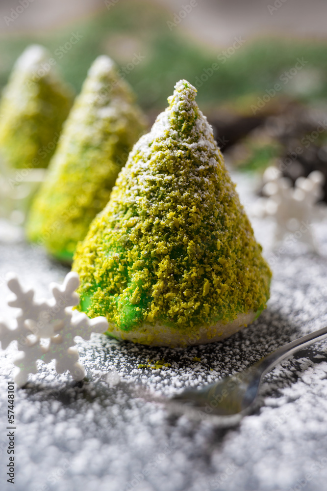 Kuchen mit Pistazien und Puderzucker bestäubt
