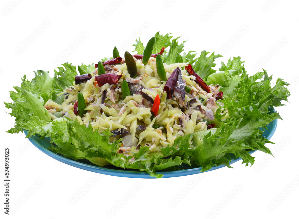 spicy mackerel salad with mix fresh vegetable, thai food.transparent png